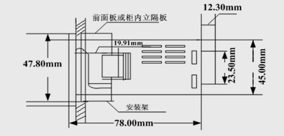 1、將儀器從正面推入開好孔的柜體面板,然后裝入安裝支架至卡緊為止。